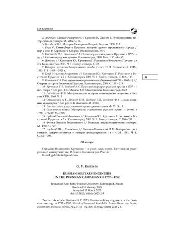 10. Кретинин Г. В., Новиков А. С. Прусский маршрут русской армии в 1757 г.: ист. очерк / под ред. Е. С. Манюк, В. В. Макогоновой. Калининград, 2022.