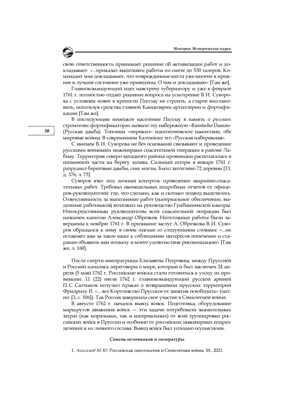 1. Анисимов М. Ю. Российская дипломатия и Семилетняя война. М., 2021. EDN: KPNKXF