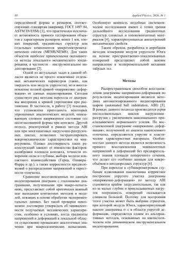 Сравнение различных методов для измерения модуля упругости Юнга наноструктурированных материалов на примере титана Усеинов А. С., Султанова Г. Х., Лактионов И. В., Федоткин А. П. 87