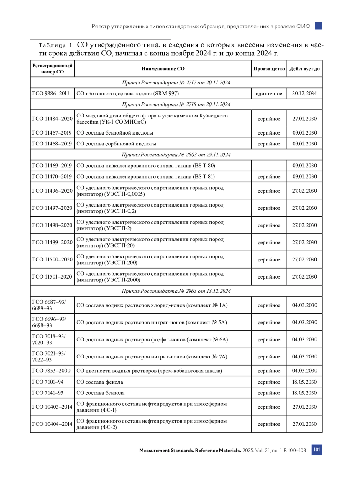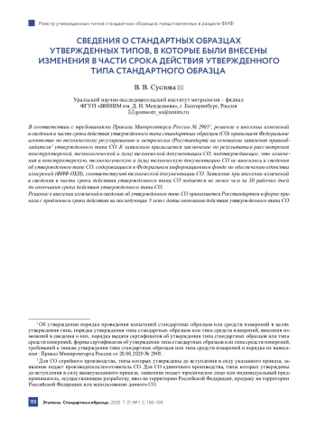 В соответствии с требованиями Приказа Минпромторга России № 2905 1, решение о внесении изменений в сведения в части срока действия утвержденного типа стандартных образцов (СО) принимает Федеральное агентство по техническому регулированию и метрологии (Росстандарт) на основании заявления правооб‑ ладателя 2 утвержденного типа СО. К заявлению прилагается заключение по результатам рассмотрения конструкторской, технологической и (или) технической документации СО, подтверждающее, что измене‑ ния в конструкторскую, технологическую и (или) техническую документацию СО не вносились и сведения об утвержденном типе СО, содержащиеся в Федеральном информационном фонде по обеспечению единства измерений (ФИФ ОЕИ), соответствуют технической документации СО. Заявление при внесении изменений в сведения в части срока действия утвержденного типа СО подается не менее чем за 30 рабочих дней до окончания срока действия утвержденного типа СО.