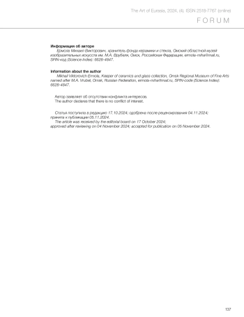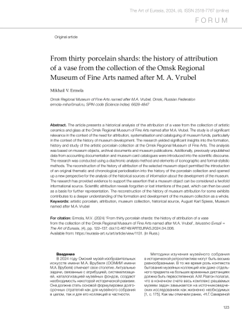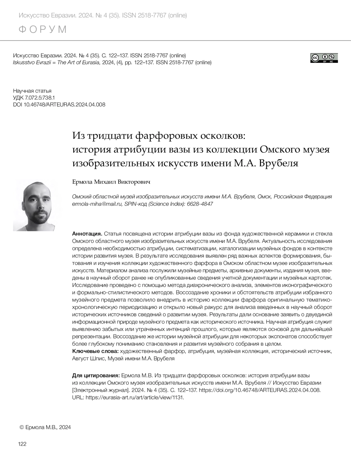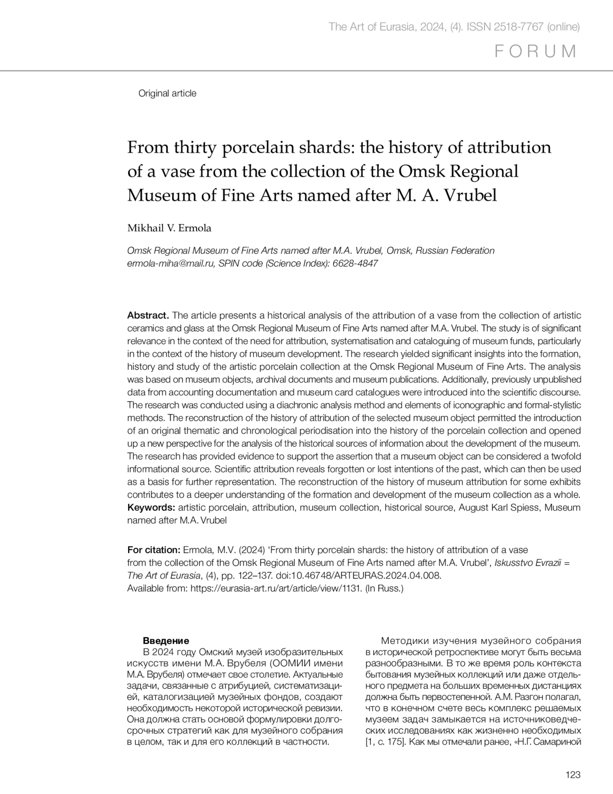 Ермола М.В. Из тридцати фарфоровых осколков: история атрибуции вазы из коллекции Омского музея изобразительных искусств имени М.А. Врубеля // Искусство Евразии