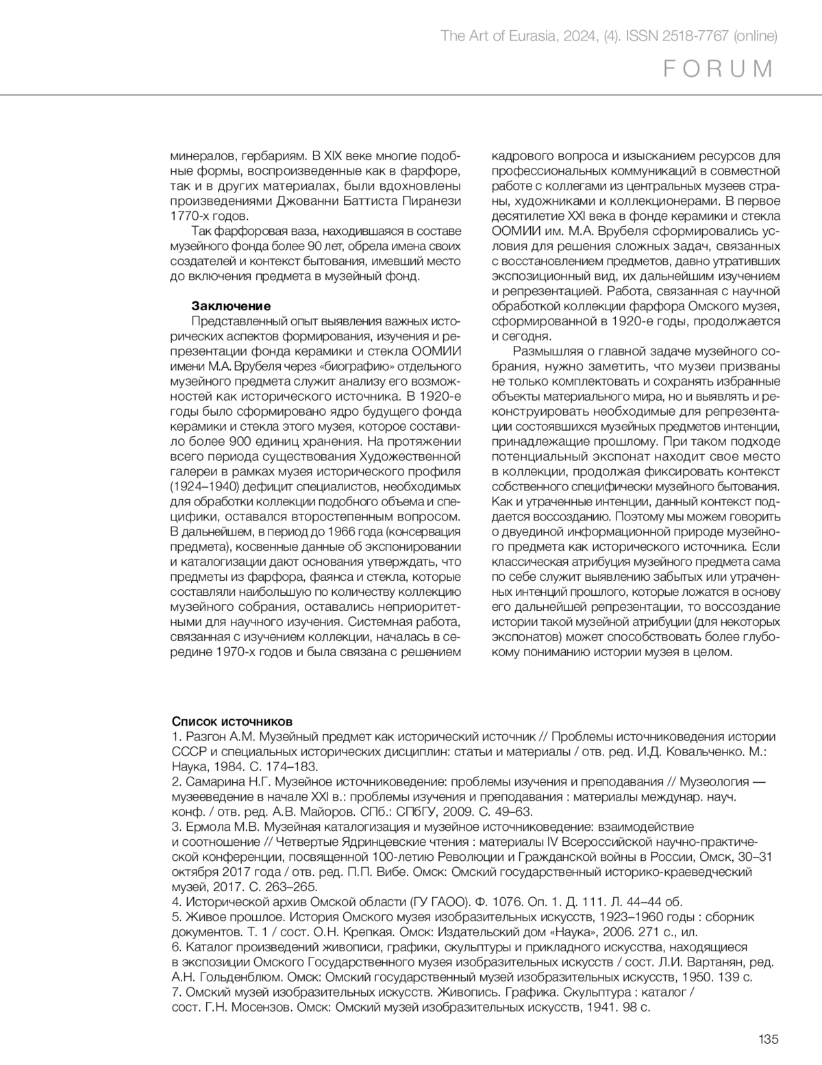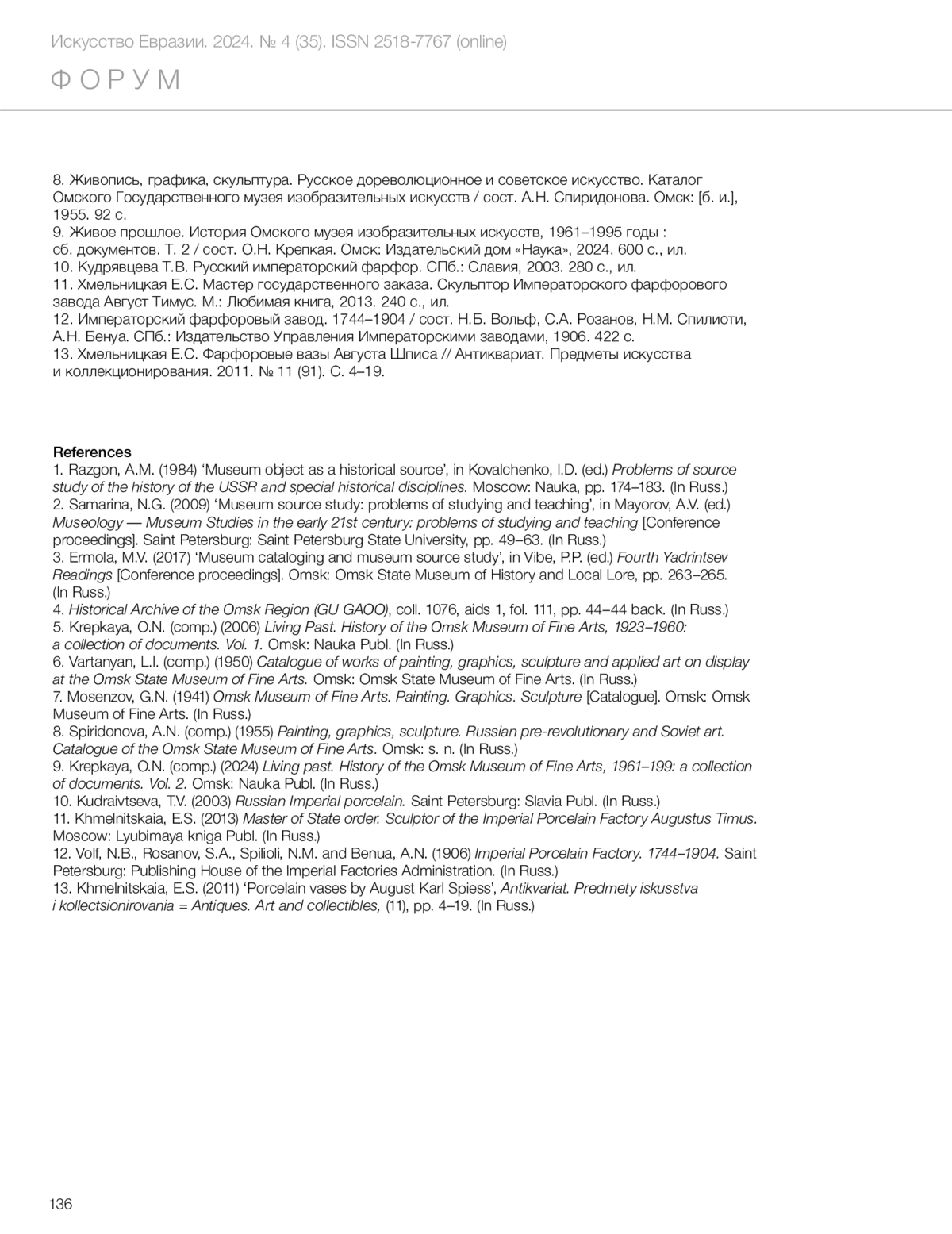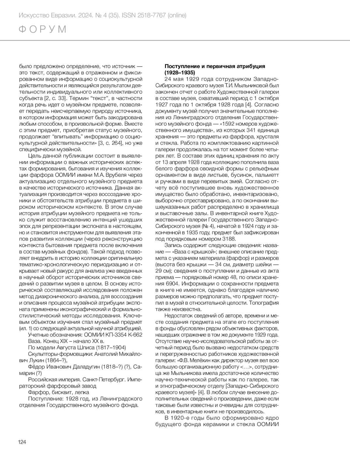 Ермола М.В. Из тридцати фарфоровых осколков: история атрибуции вазы из коллекции Омского музея изобразительных искусств имени М.А. Врубеля // Искусство Евразии