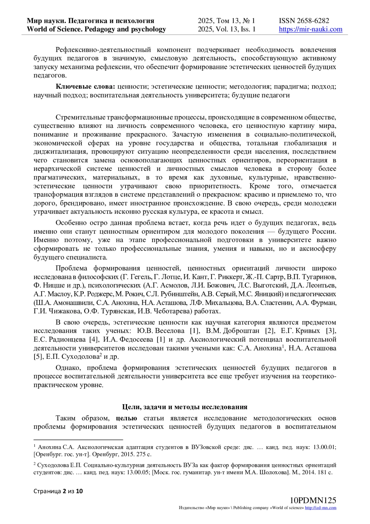 5. Асташова Н.А. Развитие аксиосферы будущего педагога в диалоговом пространстве современного образования // Образование и наука. 2018. Т. 20, № 7. С. 32-67. EDN: XZDJFB