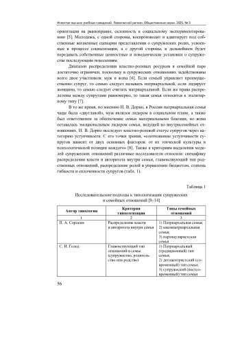 Актуальность и цели. Стремление к индивидуализации семейных ролей стирает границы между традиционными ролями супругов, оставляя пространство для поиска новых типов супружеских отношений. Представления молодежи о властно-ролевом статусе супругов отражают динамику трансформации семейных ценностей в молодежной среде. Цель исследования - социологический анализ и типологизация представлений молодежи о супружеских отношениях и балансе властно-ролевых статусов супругов.