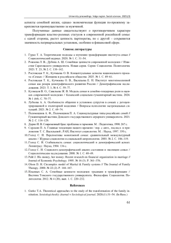 1. Гурко Т. А. Теоретические подходы к изучению трансформации института семьи // Социологический журнал. 2020. № 1. С. 31-54. EDN: ENPYWR