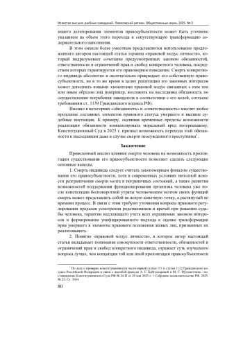 12. Пятков Д. В. Смерть человека в контексте учения о лицах // Право. Журнал Высшей школы экономики. 2020. № 3. С. 112-133. DOI: 10.17323/2072-8166.2020.3.112.133 EDN: AWDAFC