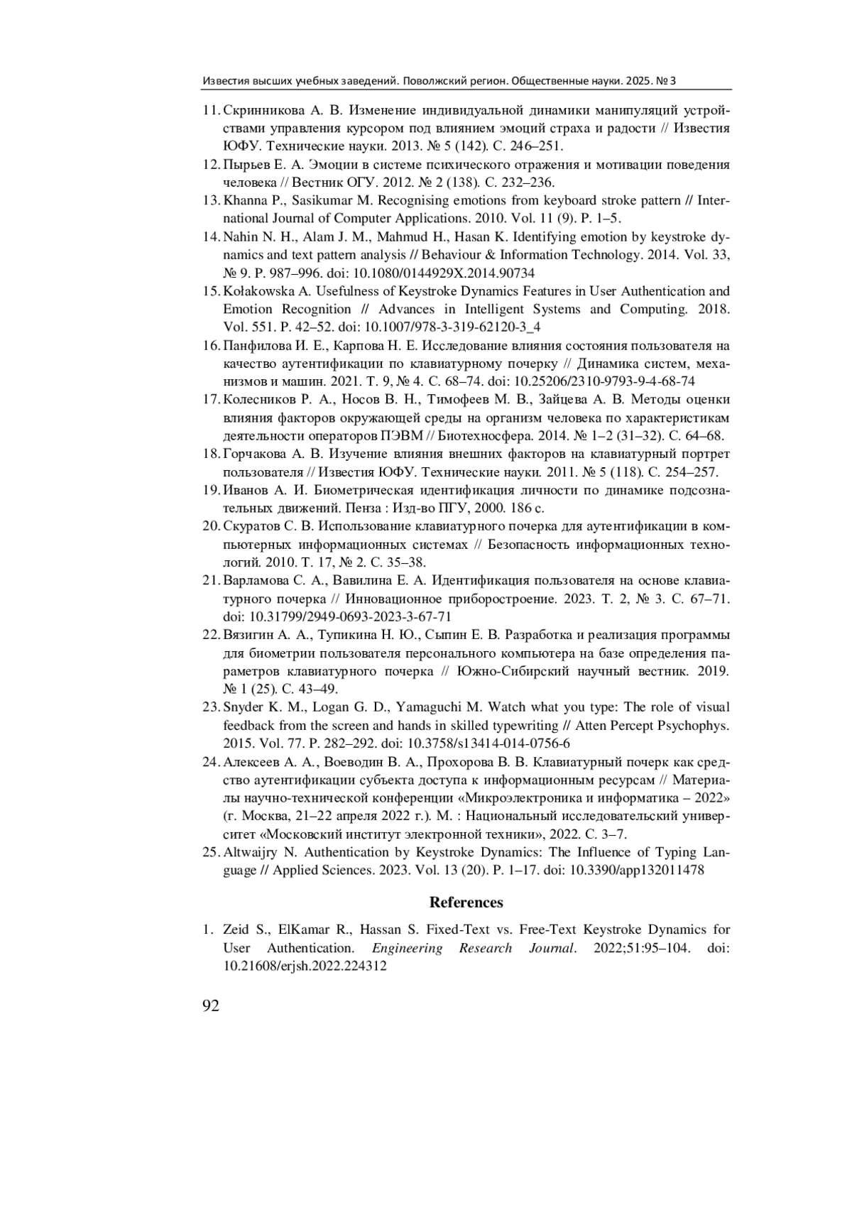 25. Altwaijry N. Authentication by Keystroke Dynamics: The Influence of Typing Language // Applied Sciences. 2023. Vol. 13 (20). P. 1-17. DOI: 10.3390/app132011478 EDN: OJOFQG