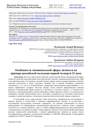 Статья посвящена изучению особенностей проявлений критического мышления у юношества и молодежи, которое наиболее актуализировалось в условиях технологического прогресса и стремительной трансформации мировой повестки. В современных условиях способность к осмысленной и критической оценке информации является залогом не только личного успеха, но и устойчивого развития общества. Эмпирическая выборка исследования была представлена тремя группами: 14-17 - ранняя юность, 18-21 - поздняя юность, 22-35 - молодость. Предметом исследования выступили уровень развития критического мышления и его предикторы у разных возрастных групп. В диагностический пакет исследования вошли - Тест «Критическое мышление» Л. Старки, Тест «Критическое мышление» Дж. Кинчер, Опросник эмоционального интеллекта «ЭмИн», «Мельбурнский опросник принятия решений», Стратегии информационного поведения (СИП). Эмпирическое исследование показало, что большинству респондентов всех групп свойственен средний уровень развития критического мышления, наименьшие различия в уровне выраженности критического мышления наблюдаются между двумя юношескими группами- 14-17 лет и группой 18-21 лет, более высокий уровень критического мышления наблюдается в старшей возрастной группе 22-35 лет. По результатам исследования установлено, что различаются механизмы осуществления критической оценки информации. Старшее поколение больше ориентируются на логический анализ, понимание и распознавание своих и чужих эмоций, а молодое поколение (14-17 лет) больше использует фильтры на этапе отбора информации и сверхбдительность, как стратегию принятия решений.