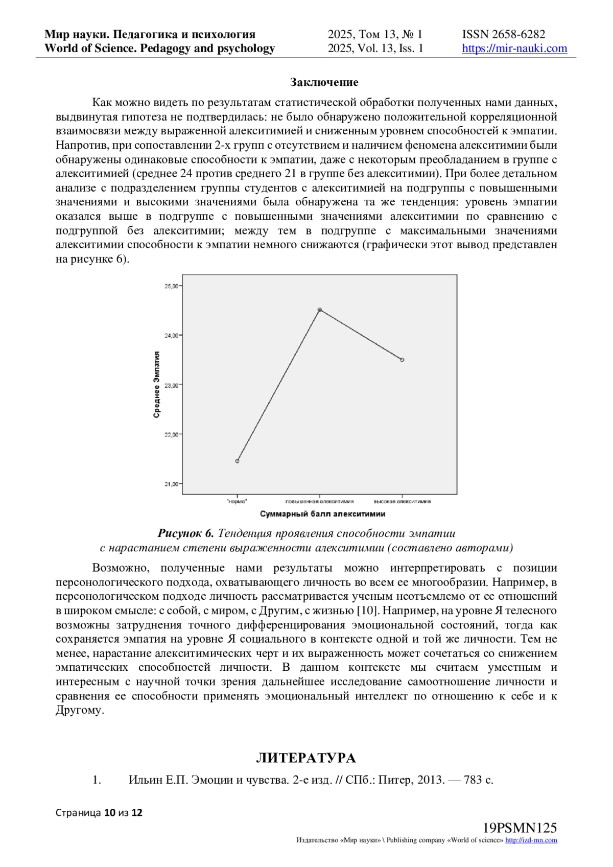 9. Старостина Е.Г., Тэйлор Гр.Дж, Квилти Л.К., Бобров А.Е., Мошняга Е.Н., Пузырева Н.В., Боброва М.А., Ивашкина М.Г., Кривчикова М.Н., Шаврикова Е.П., Бэгби М. Торонтская шкала алекситимии (20 пунктов): валидизация русскоязычной версии на выборке терапевтических больных // Социальная и клиническая психиатрия. - 2010 - № 4 - С. 31-38. URL: https://cyberleninka.ru/article/n/torontskaya-shkala-aleksitimii-20-punktov-validizatsiya-russkoyazychnoy-versii-na-vyborke-terapevticheskih-bolnyh (дата обращения: 14.01.2025). EDN: NAVPKP
