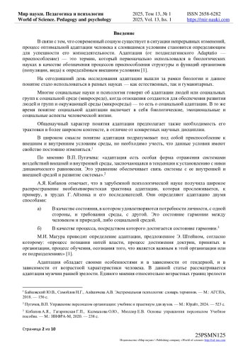 В связи с тем, что современный социум существует в ситуации непрерывных изменений, процесс оптимальной адаптации человека к слоившимся условиям становится определяющим для успешности его жизнедеятельности.
