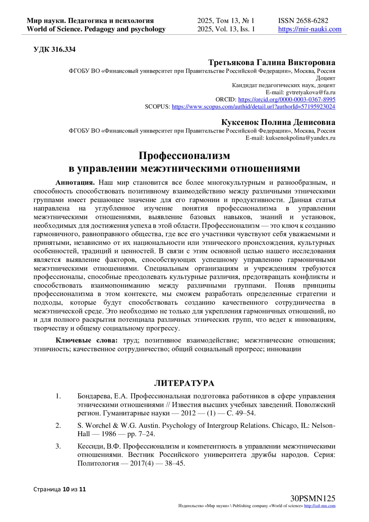 3. Кессиди, В.Ф. Профессионализм и компетентность в управлении межэтническими отношениями. Вестник Российского университета дружбы народов. Серия: Политология - 2017(4) - 38-45.