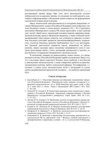 5. Назырова Н. Х., Иванцова Г. А. Проблемы законодательного регулирования миграционных процессов // E-Scio. 2021. № 9 (60). С. 43-47. EDN: BMNOYQ