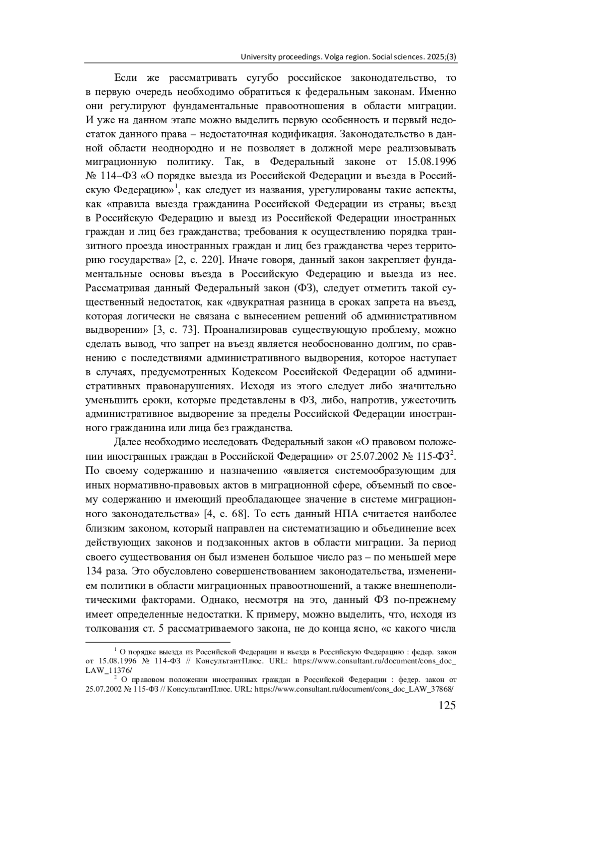 2. Озеров И. Н., Катаева О. В. Нормативная правовая основа миграционного правопорядка в Российской Федерации: направления совершенствования // Вестник Воронежского государственного университета. Серия: Право. 2020. № 2 (41). С. 217-223. EDN: XRZUFX