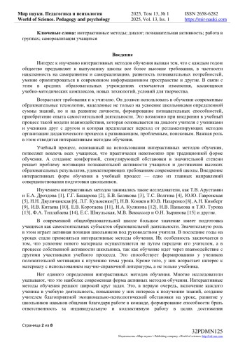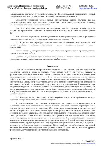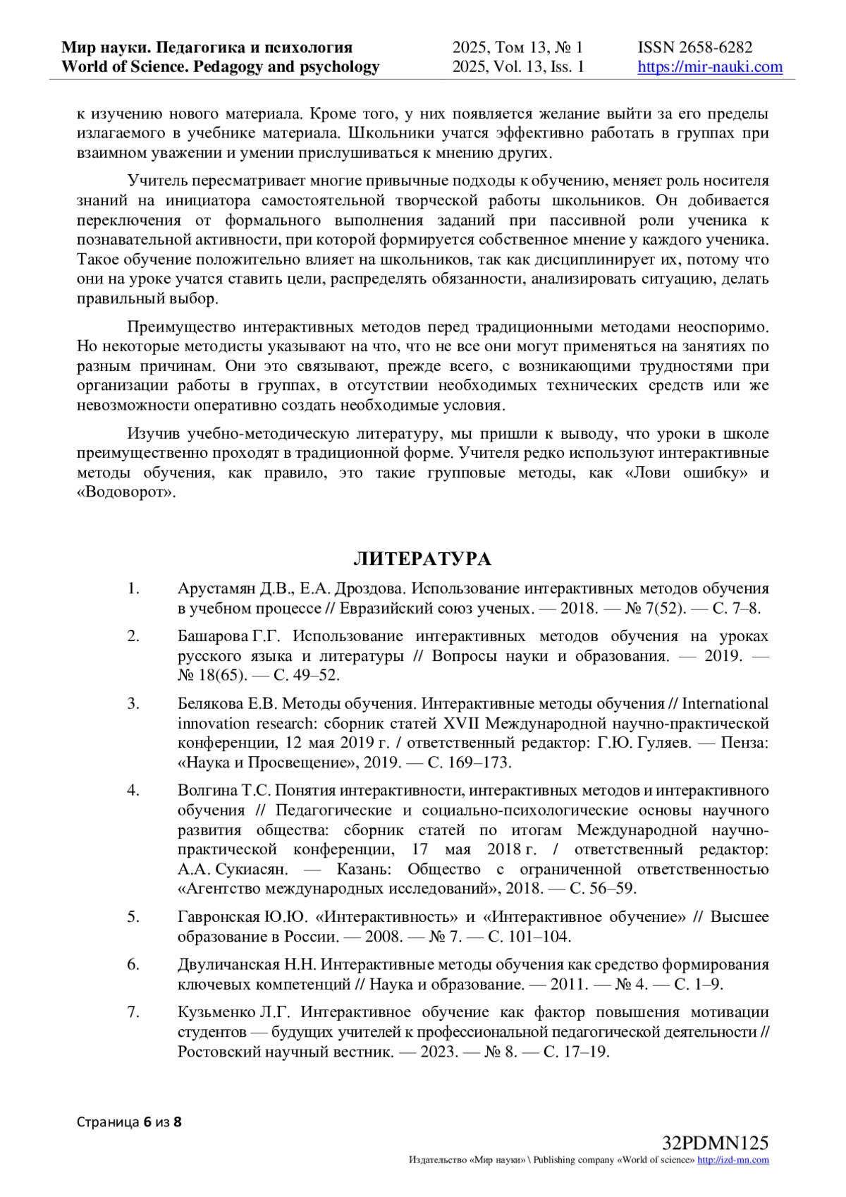 7. Кузьменко Л.Г. Интерактивное обучение как фактор повышения мотивации студентов - будущих учителей к профессиональной педагогической деятельности // Ростовский научный вестник. - 2023. - № 8. - С. 17-19.