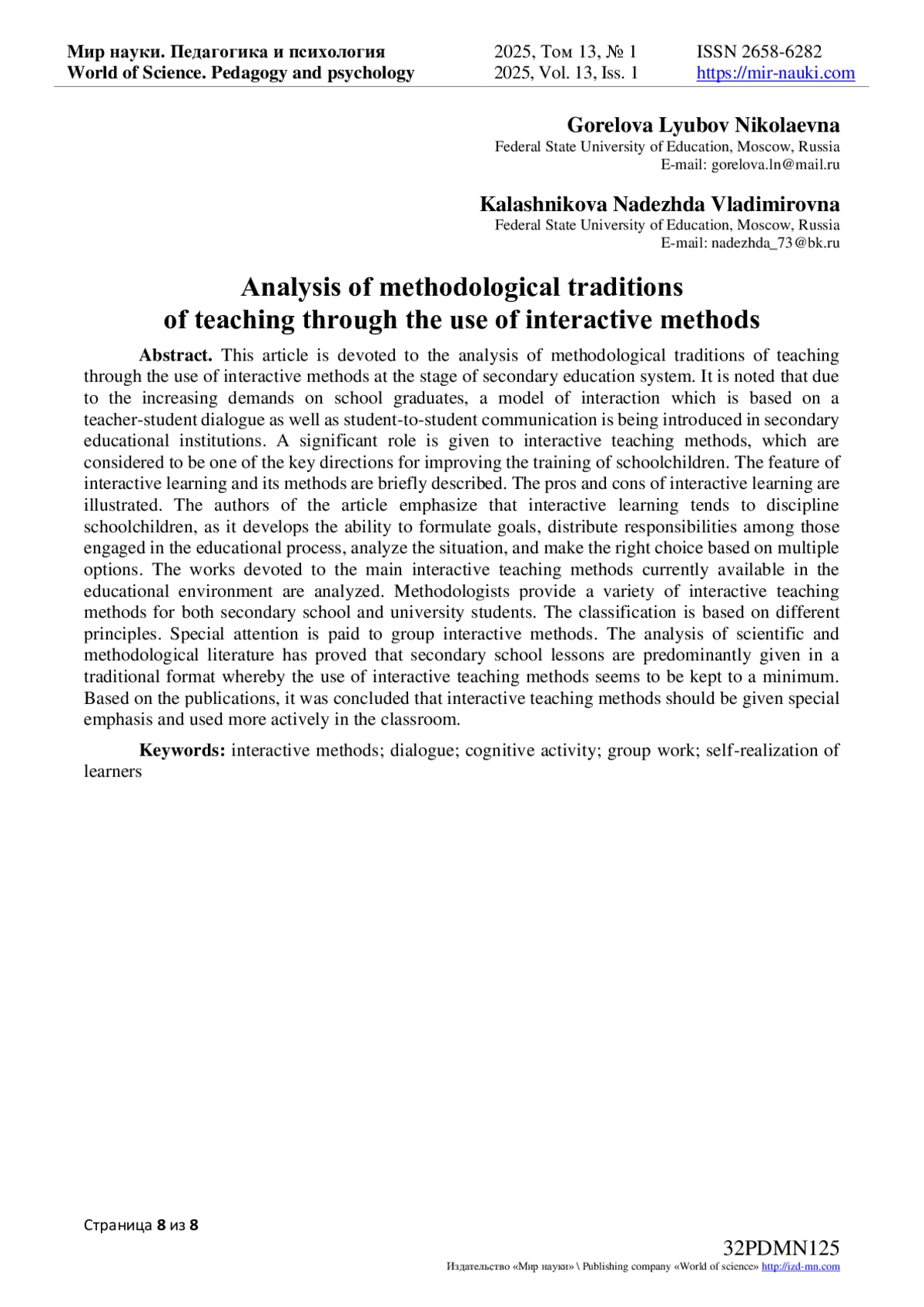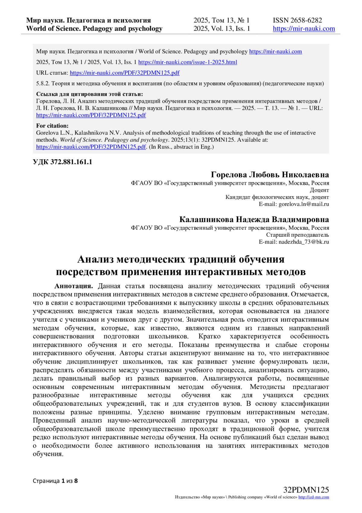 - ИЗДАТЕЛЬСТВО МИР НАУКИ