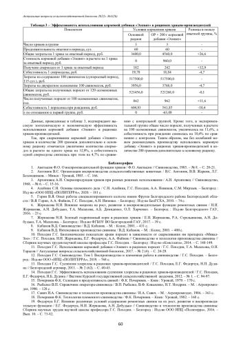 В статье представлены результаты проведенных исследований по включению в рационы кормления цыплят-бройлеров кросса «Кобб-500» и действия на продуктивность с.-х. птицы ферментов – протеазы и ксиланазы, по отдельности и совместно. В кормлении животных и птиц роль пищевых ферментов определена – расщеплять крупные молекулы корма на мономеры для последующего усвоения в организме. Действие протеолитических ферментов направлено на зерновые белки и продукты гидролиза белков. На окончание опытного периода – в 41 сутки, наблюдалась следующая динамика живой массы: цыплята всех опытных 1, 2 и 3 групп превышали показатели контрольной на 95,3 г (3,90%), 109, 4 г (4,48%), 9,2 г (0,37%) соответственно. Однако, на конец опытного периода живая масса цыплят 3 опытной группы, получавших комплекс ферментов, показала снижение массы в сравнении с 1 и 2 опытной группой. Сохранность цыплят опытной группы снизилась до 93,85%, а всех опытных групп – была выше контроля на 3,28%; 1,64% и 1,64% соответственно. Получив 146,263 кг прироста живой массы со всего поголовья цыплят-бройлеров контрольной группы, затраты комбикорма в расчете на один килограмм прироста составил 1,832 кг. В 1, 2 и 3 опытных группах, в которых бройлерам скармливали протеазу и ксиланазу в отдельности, и в совокупности, был получен больший прирост по живой массе, а расход комбикорма на 1 кг прироста в 1 и 2 группе сократился до 1,774 и 1,778, а в 3 – увеличился на 0,061 кг, соответственно. Мы предполагаем, что это может быть связано с пониженной активностью собственных ферментов поджелудочной железы цыплят-бройлеров 3 опытной группы. На снижение ферментной активности оказали влияние собственно непосредственное влияние вводимый комплекс ферментов, поскольку их присутствие тормозило работу ферментной системы. Вероятно, что большая часть вводимой нами протеазы расходовалась на расщепление ксиланазы (которая по своей природе является белком), а не на протеины рациона. Можно утверждать, что отдельно каждый из ферментов возможно полноценно использовать в промышленном мясном птицеводстве и получать планируемые приросты.