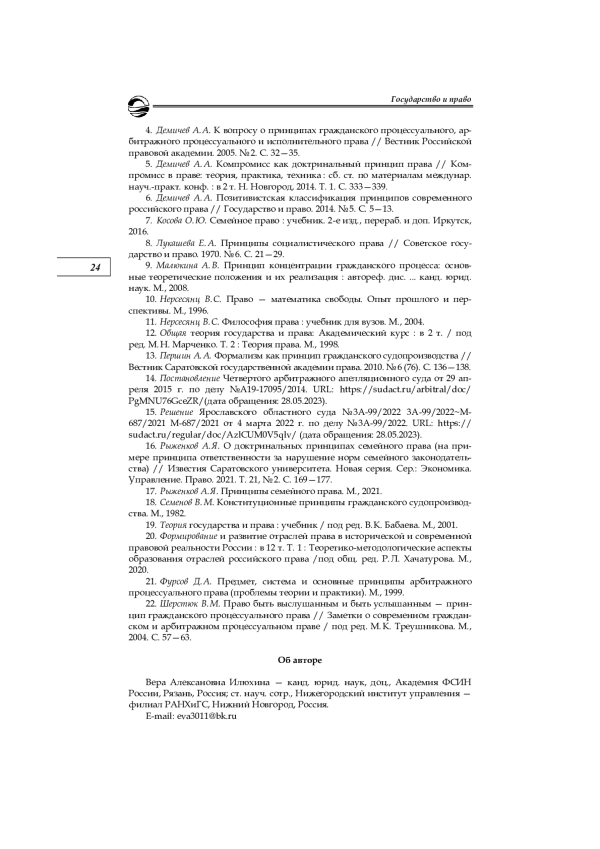 4. Демичев А. А. К вопросу о принципах гражданского процессуального, арбитражного процессуального и исполнительного права // Вестник Российской правовой академии. 2005. № 2. С. 32-35. EDN: KKNPYH
