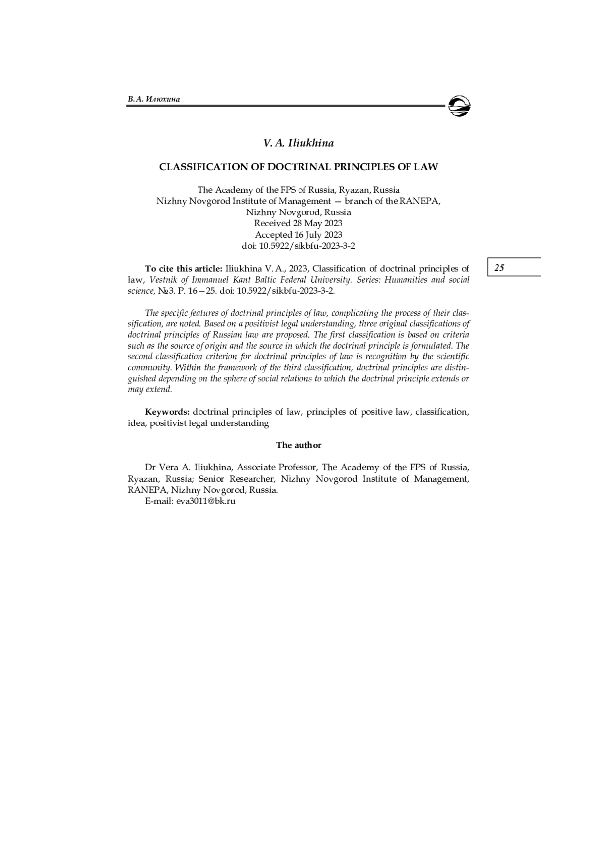 6. Демичев А. А. Позитивистская классификация принципов современного российского права // Государство и право. 2014. № 5. С. 5-13. EDN: SGNRRX