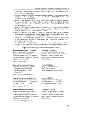 43. Sofihussein H. Ethical and Legal Considerations in Organ Donation and Transplantation: an Analysis of the Key Benefits and Drawbacks // Mousul Journal of Nursing. 2021. Vol. 9 (1). P. 120-130.