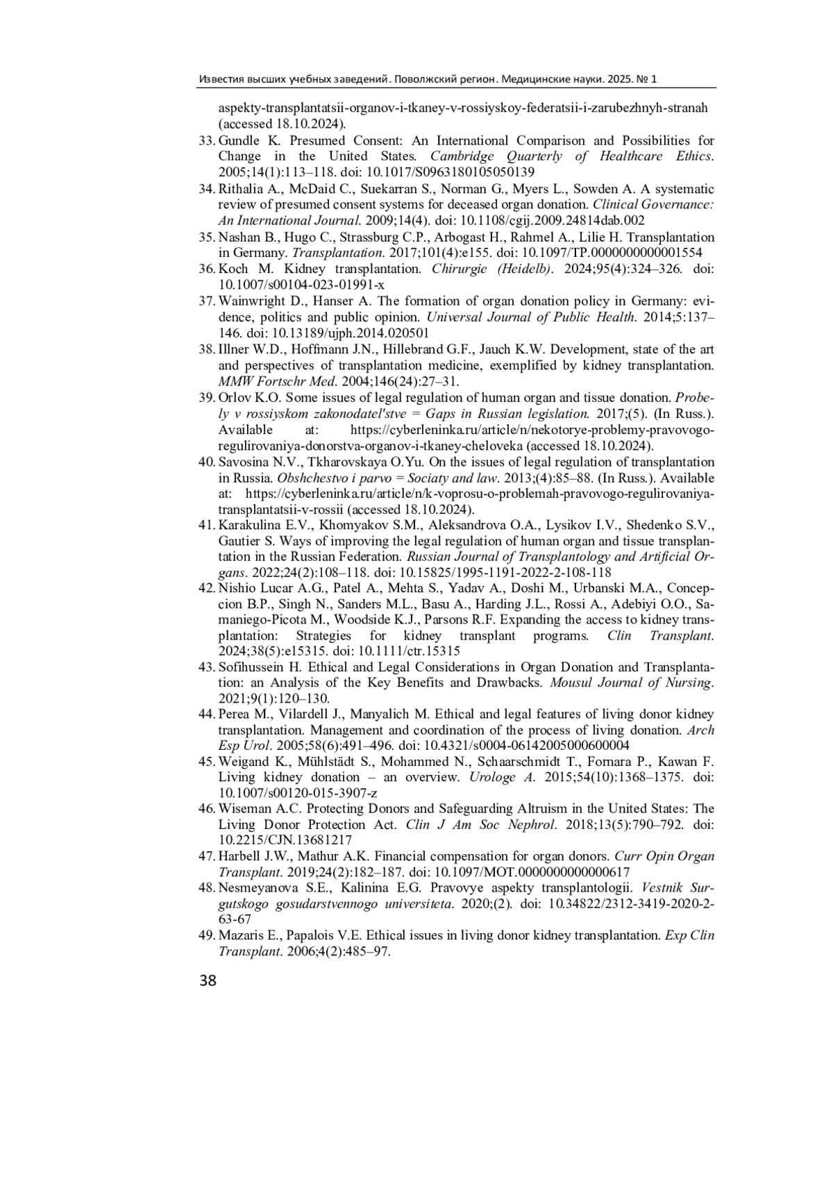 33. Gundle K. Presumed Consent: An International Comparison and Possibilities for Change in the United States // Cambridge Quarterly of Healthcare Ethics. 2005. Vol. 14 (1). P. 113-118. DOI: 10.1017/S0963180105050139 EDN: HKYVZH