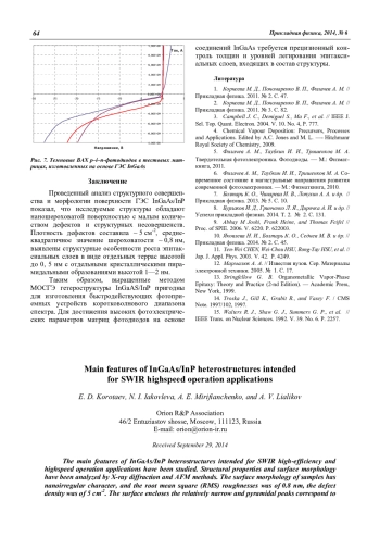 E. D. Korotaev, N. I. Iakovleva, A. E. Mirifianchenko, and A. V. Lialikov Main features of InGaAs/InP heterostructures intended for SWIR highspeed operation applications 60