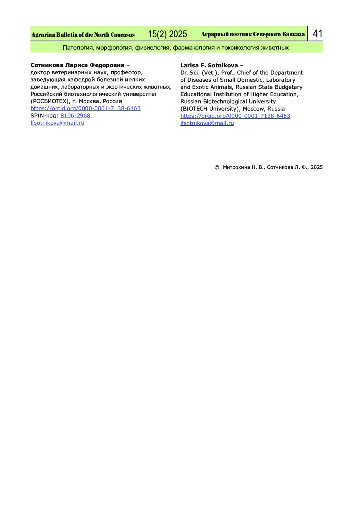 2. Дудин, П.В., и др. Сравнительная эффективность протоколов химиотерапии CHOP Madison Wisconsin и СОР при лечении в-клеточной лимфомы у собак. Актуальные вопросы ветеринарной биологии. 2024;1(61):36-39. DOI: 10.24412/2074-5036-2024-161-36-39