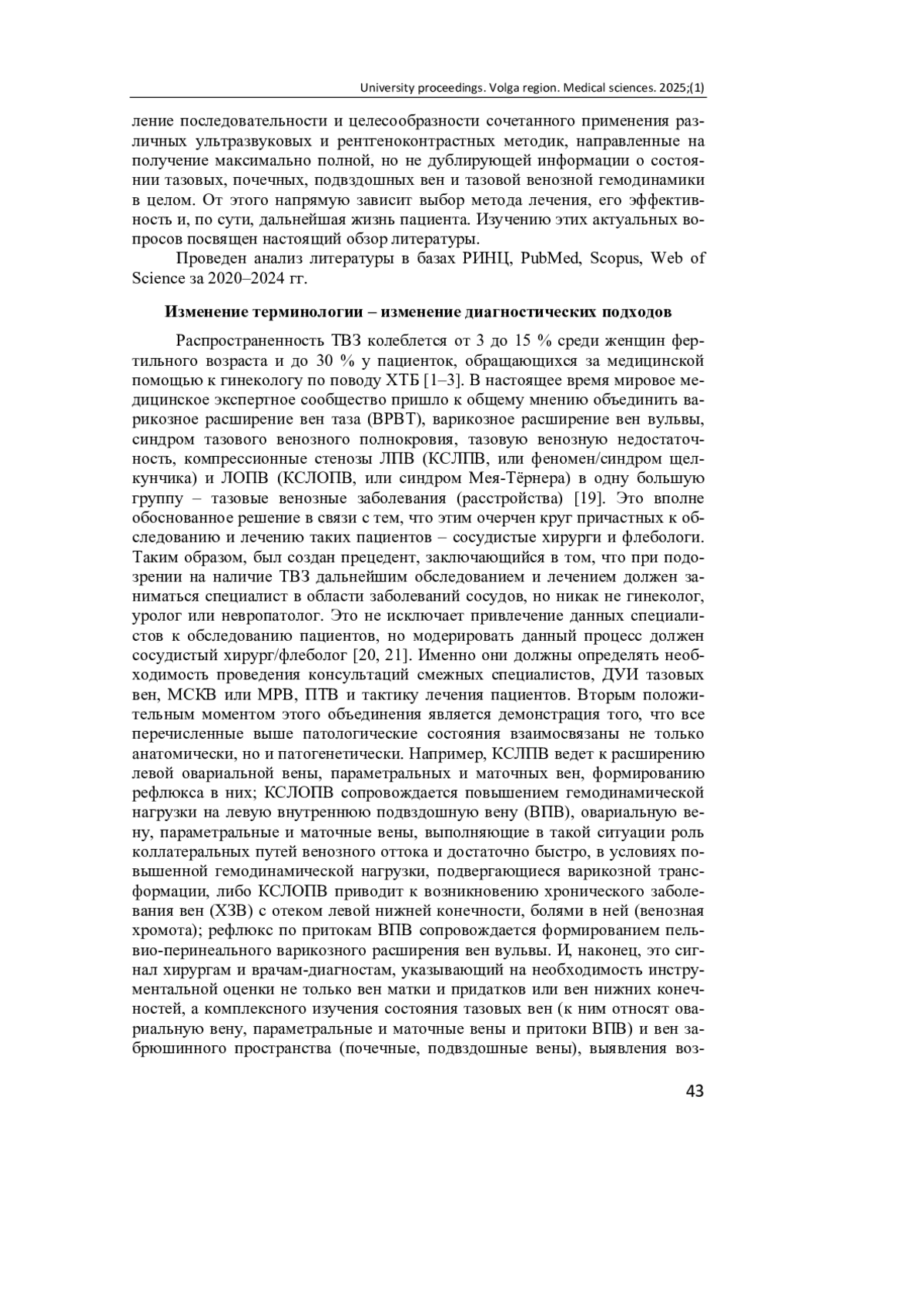 44. Gavrilov S. G., Karalkin A. V., Mishakina N. Y. [et al.]. Hemodynamic and neurobiological factors for the development of chronic pelvic pain in patients with pelvic venous disorder // J Vasc Surg Venous Lymphat Disord. 2023. Vol. 11 (3). P. 610-618. DOI: 10.1016/j.jvsv.2023.01.006