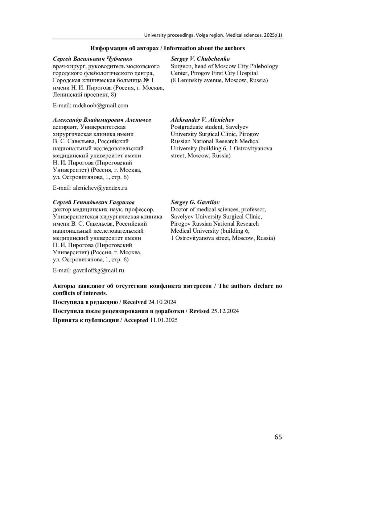 48. Gavrilov S., Moskalenko Y. P., Mishakina N. Y. [et al.]. Stratification of pelvic venous reflux in patients with pelvic varicose veins // J Vasc Surg Venous Lymphat Disord. 2021. Vol. 9 (6). P. 1417-1424.