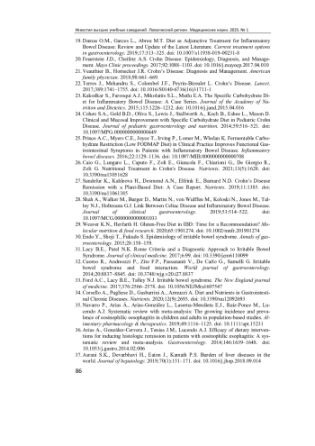 29. Weaver K. N., Herfarth H. Gluten-Free Diet in IBD: Time for a Recommendation? // Molecular nutrition & food research. 2020. Vol. 65. P. 1901274. DOI: 10.1002/mnfr.201901274 EDN: CPJJNP