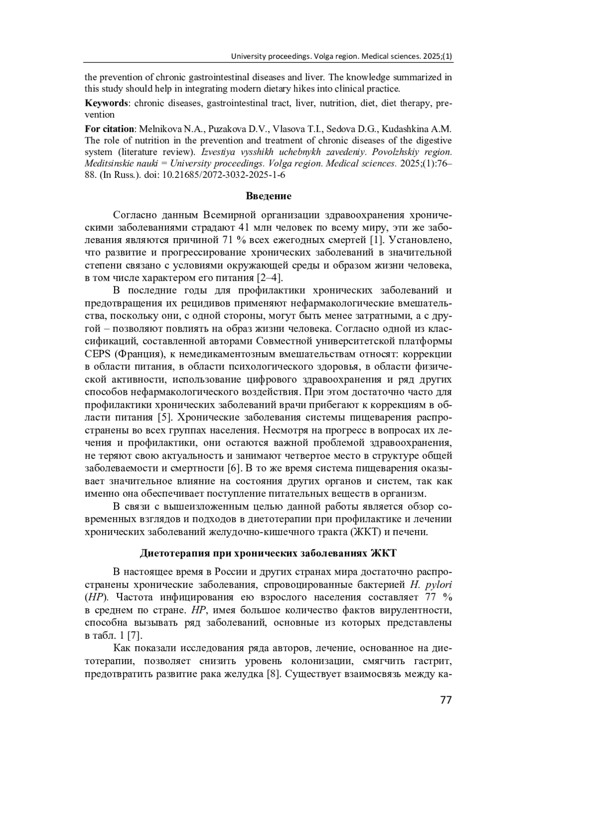 Согласно данным Всемирной организации здравоохранения хроническими заболеваниями страдают 41 млн человек по всему миру, эти же заболевания являются причиной 71 % всех ежегодных смертей [1]. Установлено, что развитие и прогрессирование хронических заболеваний в значительной степени связано с условиями окружающей среды и образом жизни человека, в том числе характером его питания [2–4].
