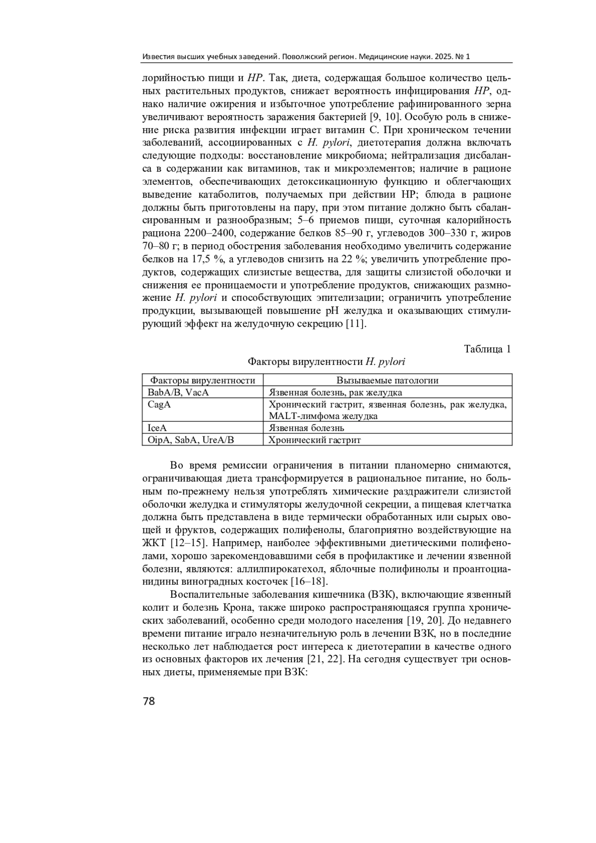 8. Пилат Т. Л., Минушкин О. Н., Лазебник Л. Б., Зверков И. В., Кузнецова Ю. Г., Ханферьян Р. А. Особенности диетотерапии при H. pylori-ассоциированных заболеваниях желудочно-кишечного тракта // Медицинский совет. 2022. Т. 16, № 15. С. 46-61. DOI: 10.21518/2079-701X-2022-16-15-46-61 EDN: TWUXTZ