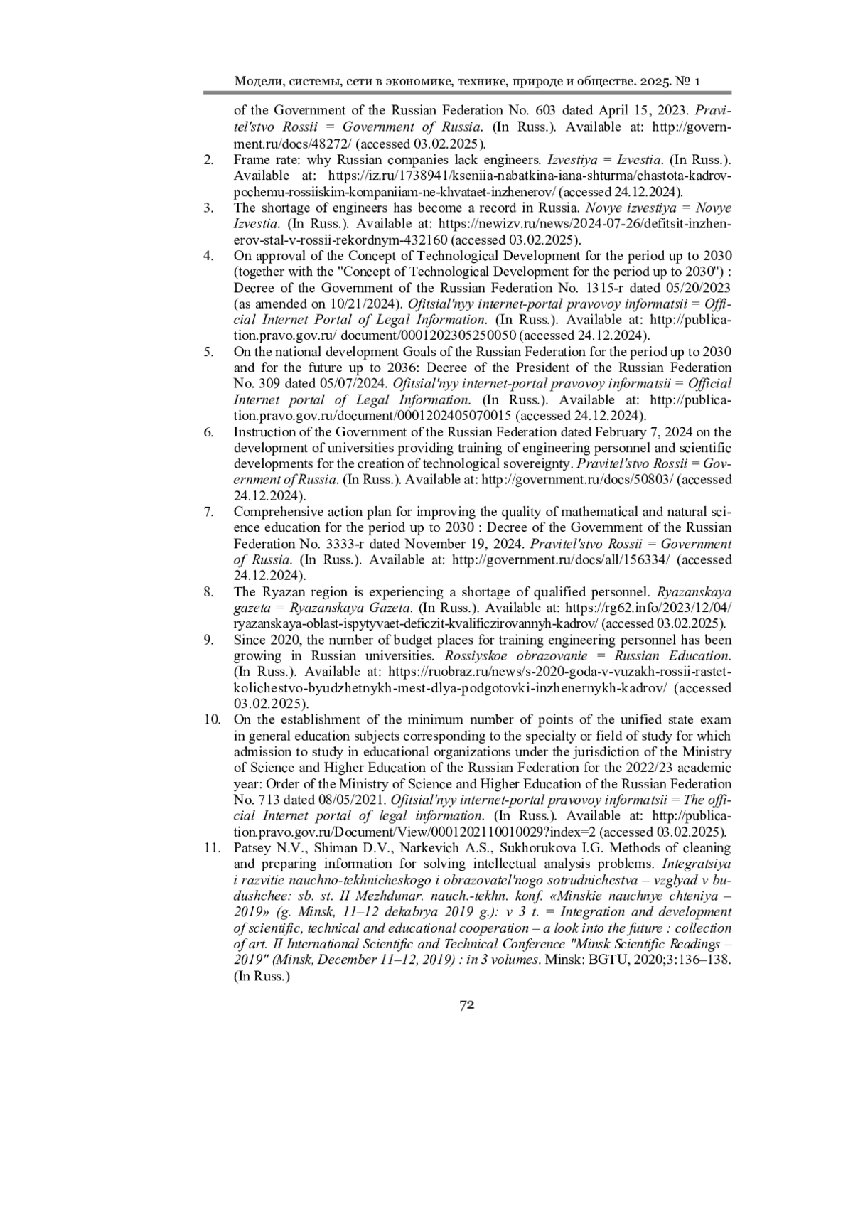 9. С 2020 года в вузах России растет количество бюджетных мест для подготовки инженерных кадров // Российское образование. URL: https://ruobraz.ru/news/s-2020-goda-v-vuzakh-rossii-rastet-kolichestvo-byudzhetnykh-mest-dlya-podgotovki-inzhenernykh-kadrov/(дата обращения: 03.02.2025).