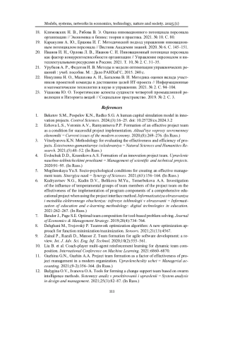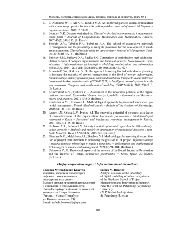 12. Булыгина О. В., Иванова О. А. Инструменты формирования команды поддержки изменений на основе методов роевого интеллекта // Системный анализ в проектировании и управлении. 2021. Т. 25, № 3. С. 82-87. EDN: ZTFJIU