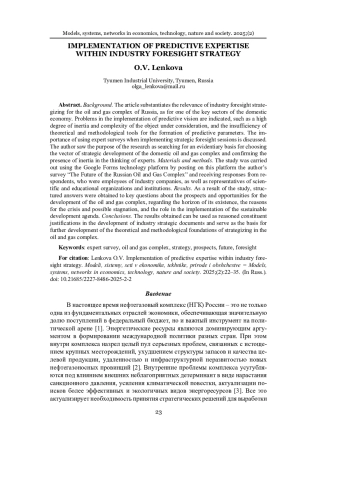 Актуальность и цели. Обосновывается актуальность отраслевого форсайт-стратегирования для одного из ключевых секторов отечественной экономики - нефтегазового комплекса России. Указываются проблемы в реализации предиктивного видения, такие как высокая степень инерционности и сложности рассматриваемого объекта, недостаточность теоретико-методического инструментария для формирования отраслевых прогностических параметров. Приводится важность использования экспертных опросов при реализации стратегических форсайт-сессий. В качестве цели проводимого исследования был определен поиск доказательной основы для выбора вектора стратегического развития отечественного нефтегазового комплекса и подтверждение наличия инерционности мышления экспертов.