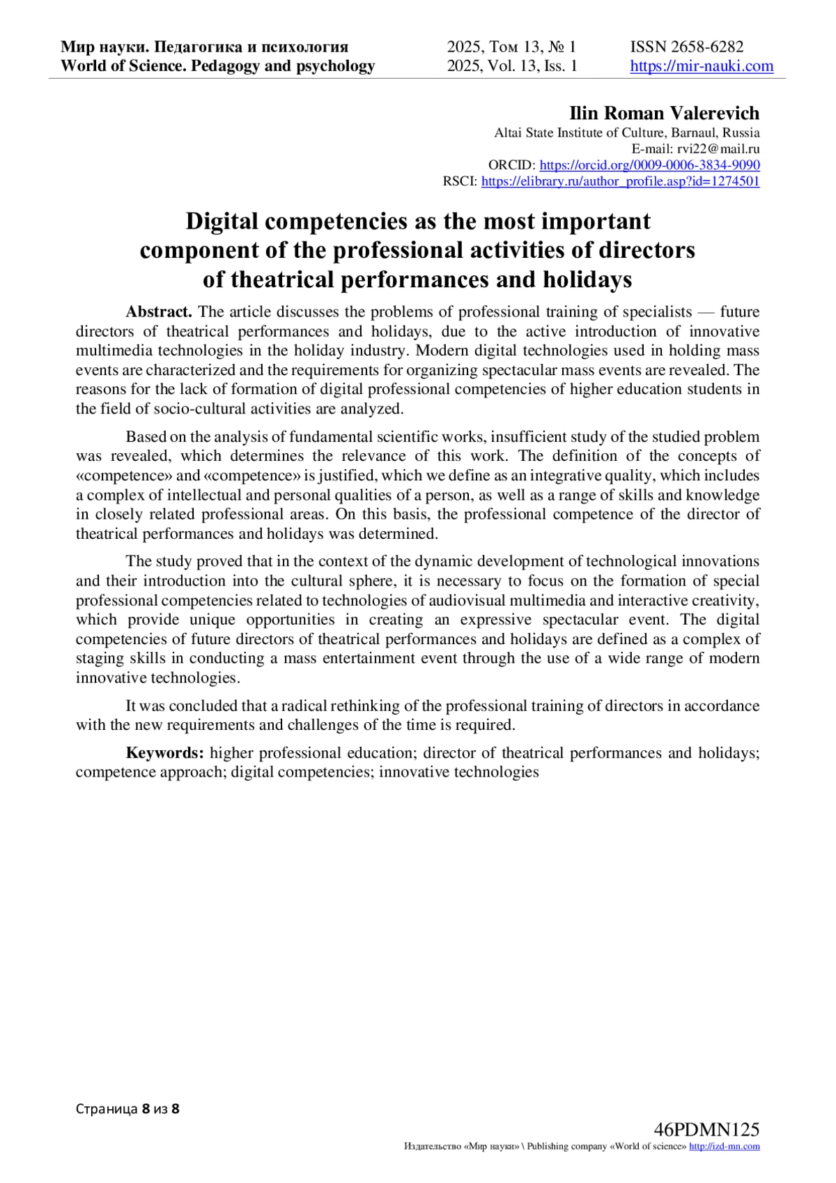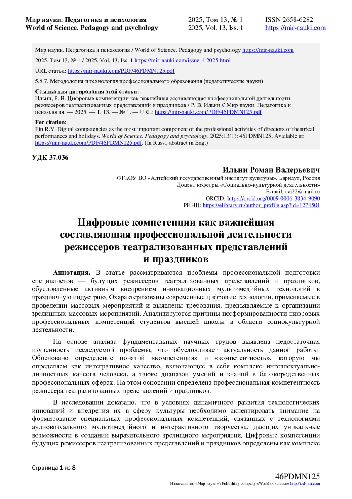 - ИЗДАТЕЛЬСТВО МИР НАУКИ