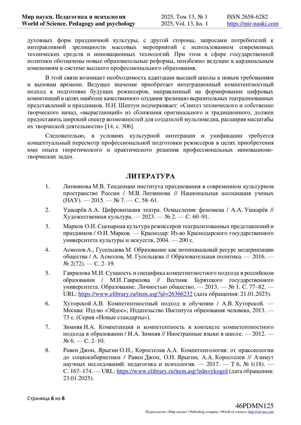 5. Гаврилова М.И. Сущность и специфика компетентностного подхода в российском образовании / М.И. Гаврилова // Вестник Бурятского государственного университета. Образование. Личностью общество. - 2013. - № 1. С. 77-82. - URL: https://www.elibrary.ru/item.asp?id=26366232 (дата обращения: 21.01.2025).