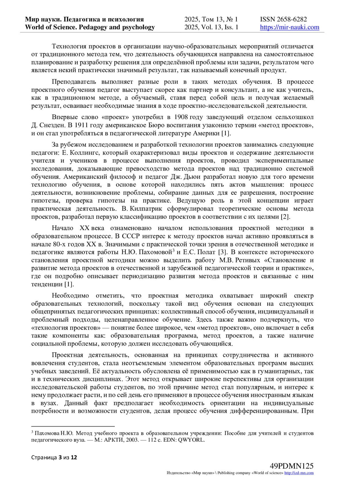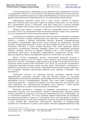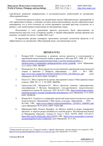 2. Пеньковских Е.А. Метод проектов в отечественной и зарубежной педагогической теории и практике // Вопросы образования. - 2010. - № 4. URL: https://www.hse.ru/data/2013/10/20/1279364153/VO4_10%20Pen’kov.pdf (дата обращения: 08.10.2024). EDN: NCQNUZ