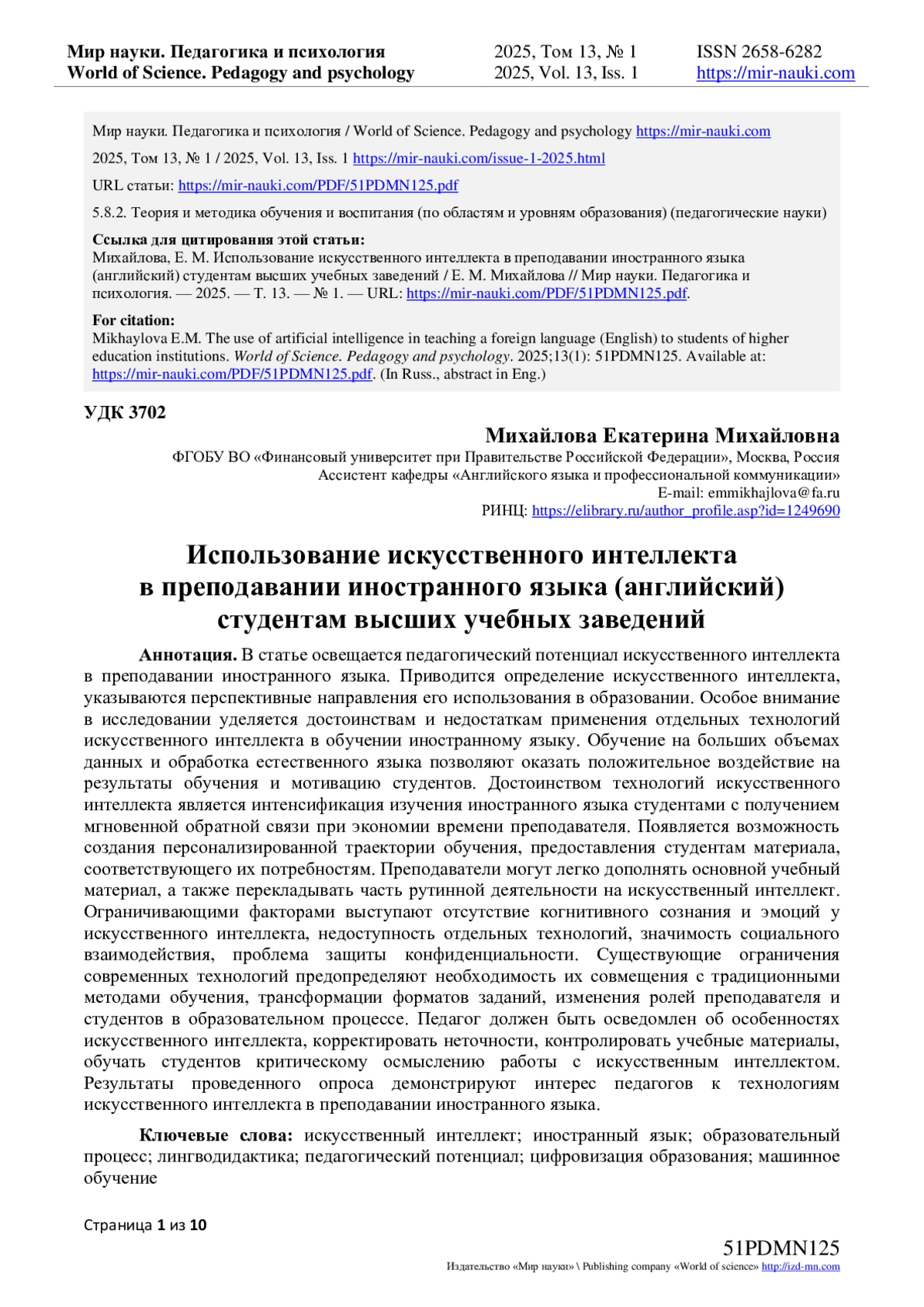 - ИЗДАТЕЛЬСТВО МИР НАУКИ