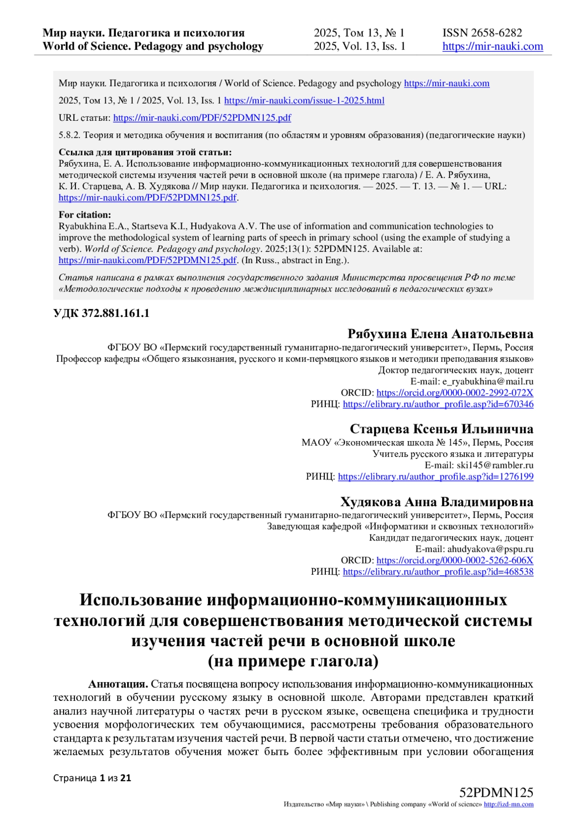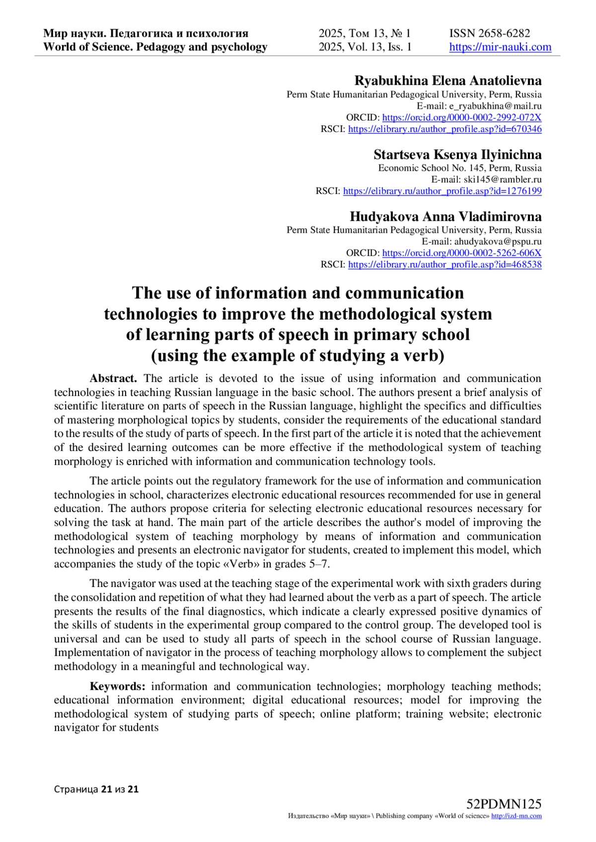 - ИЗДАТЕЛЬСТВО МИР НАУКИ