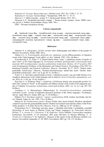 4. Иванов С. А. Названия атмосферных явлений в якутском языке и его говорах // Северо-Восточный гуманитарный вестник. 2016. № 3 (16). С. 74-84.