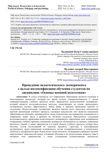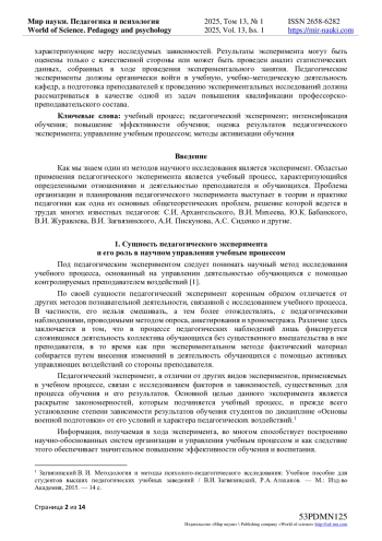 В статье отмечается, что современное образование является сложным и многогранным процессом, который все время должен совершенствоваться. С целью совершенствования учебного процесса может проводиться педагогический эксперимент, который является исследовательским методом, позволяющим на основе проведенного эксперимента изучить эффективность новых форм и приемов проведения занятий со студентами. Педагогический эксперимент является прежде всего средством обеспечения научной организации учебного процесса, основным показателем чего является повышение эффективности обучения, оцениваемой по таким показателям, как повышение успеваемости и сокращение затрат труда и времени на обучение студентов. Предлагается следующая последовательность проведения педагогического эксперимента: определение цели эксперимента (сокращение учебного времени, повышение активности обучающихся на занятии, повышение прочности знаний…); какие зависимости и в какой области учебного процесса должны быть изучены; состав исследований по каждому предмету; структура и классификация эксперимента; сроки проведения эксперимента; состав экспериментальных и контрольных объектов и экспериментаторов. В результате педагогического эксперимента выявлено наличие определенных зависимостей между условиями обучения и его результатами, вскрыты типы и механизм этих зависимостей, а также установлены количественные показатели, характеризующие меру исследуемых зависимостей. Результаты эксперимента могут быть оценены только с качественной стороны или может быть проведен анализ статистических данных, собранных в ходе проведения экспериментального занятия. Педагогические эксперименты должны органически войти в учебную, учебно-методическую деятельность кафедр, a подготовка преподавателей к проведению экспериментальных исследований должна рассматриваться в качестве одной из задач повышения квалификации профессорско-преподавательского состава.