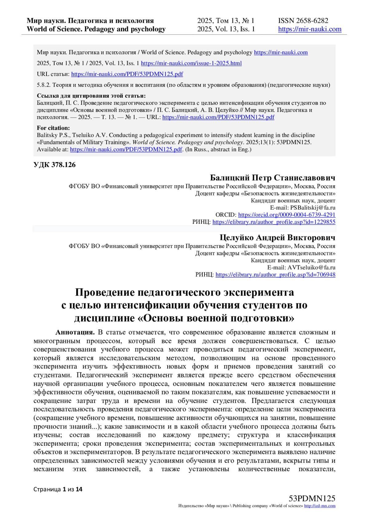 - ИЗДАТЕЛЬСТВО МИР НАУКИ