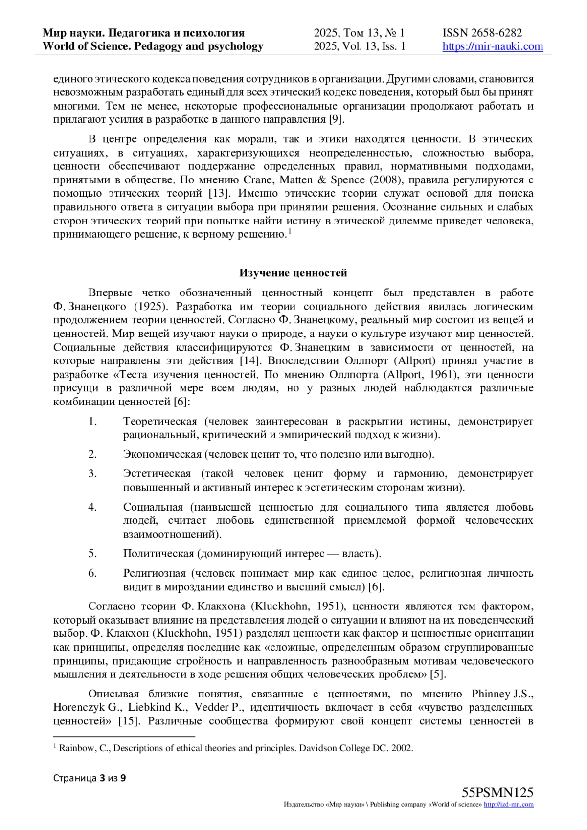 2. Лебедева, Н.М. Ценностно-мотивационная структура личности в русской культуре // Психологический журнал. - 2001. - Т. 22, № 3. - С. 26-36.