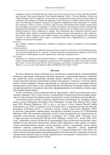 7. Львова С. Д. Состав объектов сравнений в олонхо (на материале текста олонхо “Уол Дуолан”) // Эпосоведение. 2022. № 2 (26). С. 17-27.