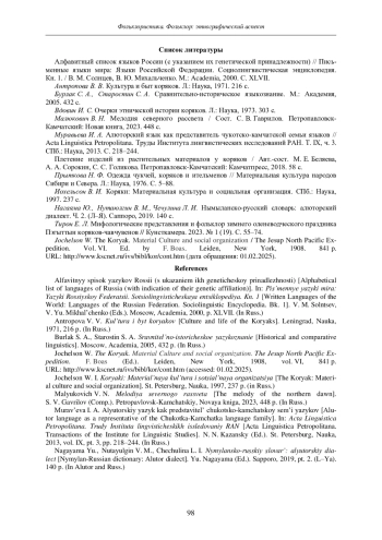 12. Jochelson W. The Koryak. Material Culture and social organization / The Jesup North Pacific Expedition. Vol. VI. Ed. by F. Boas. Leiden, New York, 1908. 841 p. URL: http://www.kscnet.ru/ivs/bibl/kor/cont.htm (дата обращения: 01.02.2025).
