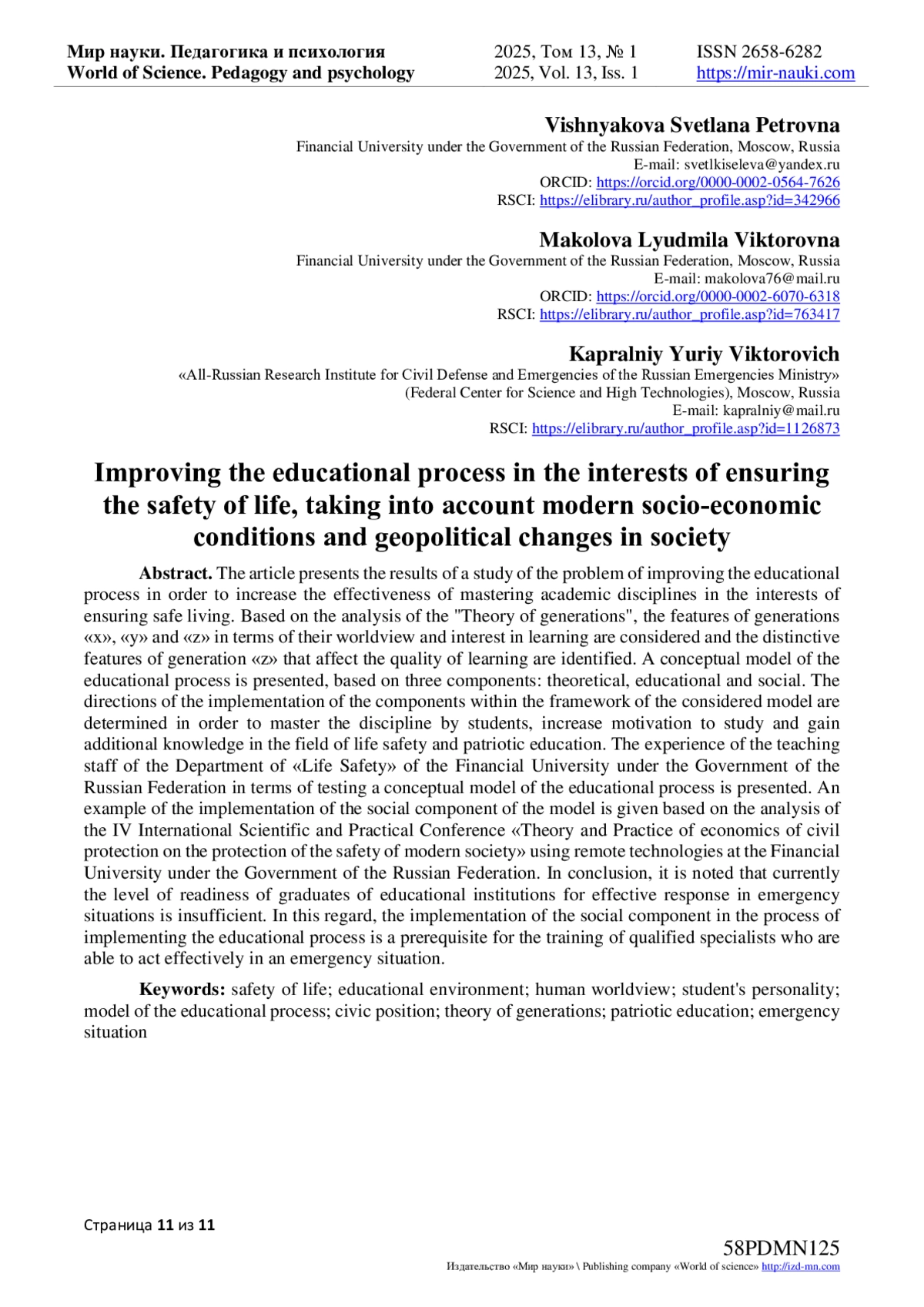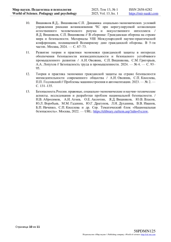 8. Вишняков, Я.Д. Использование человеко-аппаратурной интеллектуальной системы в интересах подготовки кадров в сфере обеспечения безопасности жизнедеятельности / Я.Д. Вишняков, С.П. Вишнякова, Л.В. Маколова // Мир науки. Педагогика и психология. - 2024. - Т. 12, № 3. EDN: AVFBEV