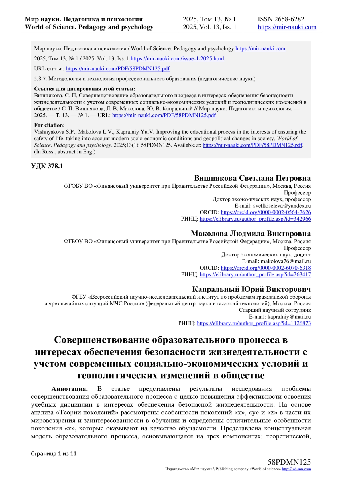 - ИЗДАТЕЛЬСТВО МИР НАУКИ