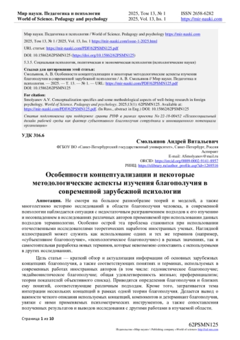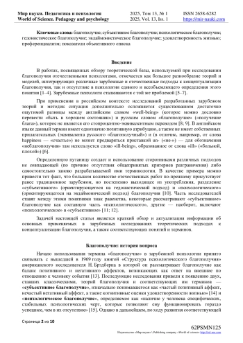 32. Horton C.J. и др. The diversity of well-being indicators: a latent profile analysis // Frontiers in Psychology. 2024. Т. 15. DOI: 10.3389/fpsyg.2024.1304074 EDN: PGCQMH