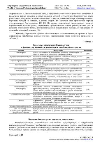 В работах, посвященных обзору теоретической базы, используемой при исследовании благополучия отечественными психологами, отмечается как большое разнообразие теорий и моделей, интегрирующих различные зарубежные и отечественные подходы к концептуализации благополучия, так и отсутствие в психологии единого и всеобъемлющего определения этого понятия [1–4].