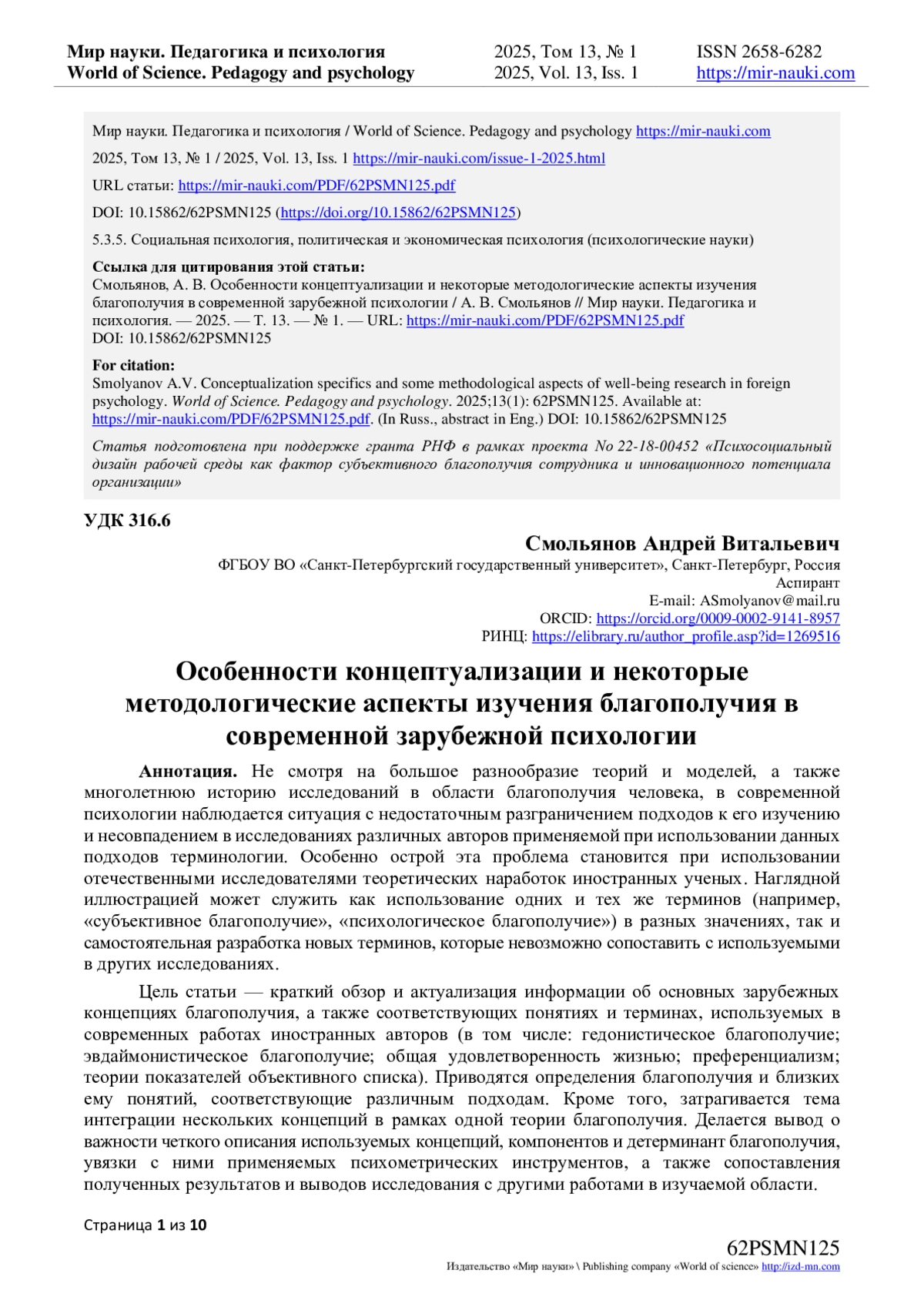 6. Simons G., Baldwin D.S. A critical review of the definition of ‘wellbeing’ for doctors and their patients in a post Covid-19 era // International Journal of Social Psychiatry. 2021. Т. 67, № 8. С. 984-991. DOI: 10.1177/00207640211032259 EDN: IWFDTA